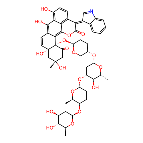 | SMILES | C[C@@H]1[C@@H](CC[C@H](O1)O[C@@H]2C[C@@H](O[C@@H]([C@H]2O)C)O[C@H]3CC[C@@H](O[C@H]3C)O[C@]45C(=O)C[C@](C[C@]4(C=CC6=C(C7=C(C=CC8=C7C(=C56)OC(=O)C8=C9C=NC1=CC=CC=C19)O)O)O)(C)O)O[C@@H]1C[C@@H]([C@H]([C@@H](O1)C)O)O |