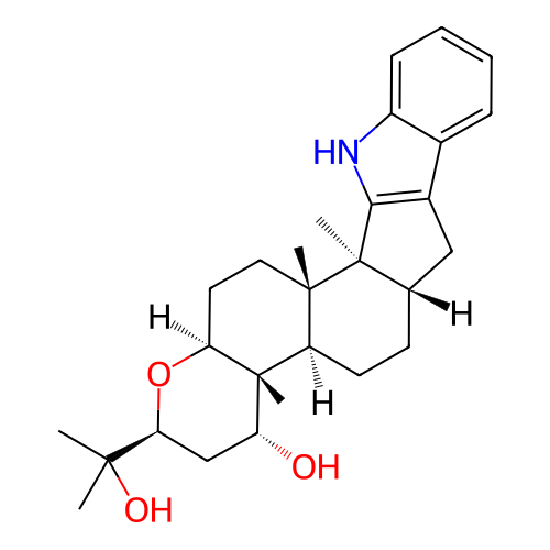 | InChI | InChI=1S/C28H39NO3/c1-25(2,31)23-15-21(30)27(4)20-11-10-16-14-18-17-8-6-7-9-19(17)29-24(18)28(16,5)26(20,3)13-12-22(27)32-23/h6-9,16,20-23,29-31H,10-15H2,1-5H3/t16-,20+,21+,22-,23-,26-,27+,28+/m0/s1 |