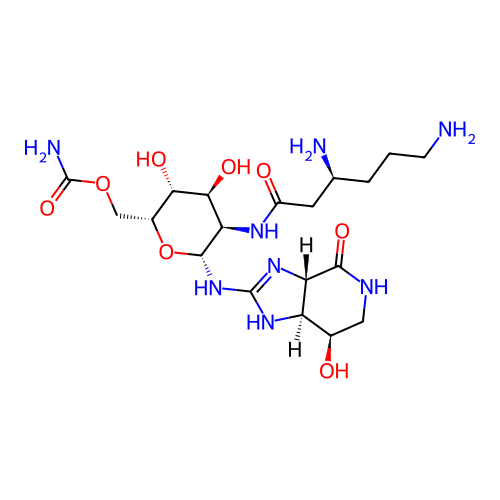 | SMILES | C1[C@H]([C@@H]2[C@@H](C(=O)N1)N=C(N2)N[C@H]3[C@@H]([C@@H]([C@H]([C@H](O3)COC(=O)N)O)O)NC(=O)C[C@H](CCCN)N)O |