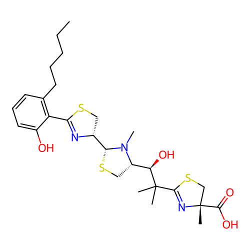 | SMILES | CCCCCC1=C(C2=N[C@@H]([C@H]3SC[C@@H]([C@@H](O)C(C)(C)C4=N[C@@](C)(C(=O)O)CS4)N3C)CS2)C(O)=CC=C1 |