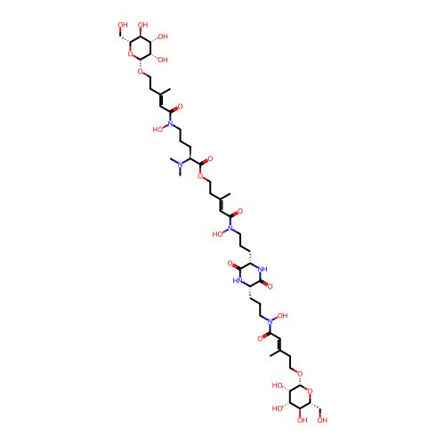 | SMILES | C/C(=C\C(=O)N(CCC[C@H]1C(=O)N[C@H](C(=O)N1)CCCN(C(=O)/C=C(\C)/CCOC(=O)[C@H](CCCN(C(=O)/C=C(\C)/CCO[C@H]2[C@H]([C@H]([C@@H]([C@H](O2)CO)O)O)O)O)N(C)C)O)O)/CCO[C@H]3[C@H]([C@H]([C@@H]([C@H](O3)CO)O)O)O |