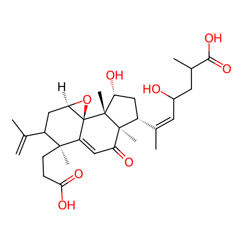 | InChI | InChI=1S/C30H42O8/c1-15(2)19-13-24-30(38-24)21(27(19,5)9-8-25(34)35)14-22(32)28(6)20(12-23(33)29(28,30)7)16(3)10-18(31)11-17(4)26(36)37/h10,14,17-20,23-24,31,33H,1,8-9,11-13H2,2-7H3,(H,34,35)(H,36,37)/b16-10-/t17?,18?,19?,20-,23-,24-,27+,28+,29-,30+/m1/s1 |