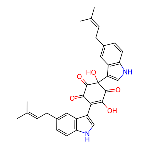 | InChI | InChI=1S/C32H30N2O5/c1-17(2)5-7-19-9-11-25-21(13-19)23(15-33-25)27-28(35)30(37)32(39,31(38)29(27)36)24-16-34-26-12-10-20(14-22(24)26)8-6-18(3)4/h5-6,9-16,33-35,39H,7-8H2,1-4H3 |