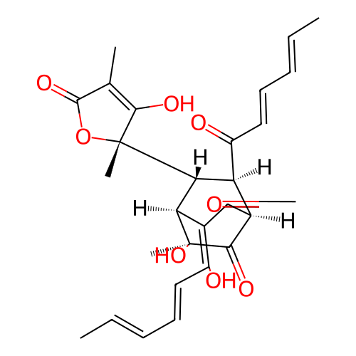 | SMILES | C/C=C/C=C/C(=O)[C@@H]1[C@H]([C@H]2/C(=C(\C=C\C=C\C)/O)/C(=O)[C@@H]1C(=O)[C@@]2(C)O)[C@]3(C(=C(C(=O)O3)C)O)C |