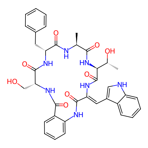 | SMILES | C[C@H]1C(=O)N[C@H](C(=O)N/C(=C\C2=CNC3=CC=CC=C32)/C(=O)NC4=CC=CC=C4C(=O)N[C@@H](C(=O)N[C@@H](C(=O)N1)CC5=CC=CC=C5)CO)[C@@H](C)O |