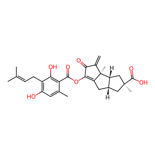 | SMILES | C=C1C(=O)C(OC(=O)C2=C(O)C(CC=C(C)C)=C(O)C=C2C)=C2C[C@H]3C[C@](C)(C(=O)O)C[C@H]3[C@]12C |