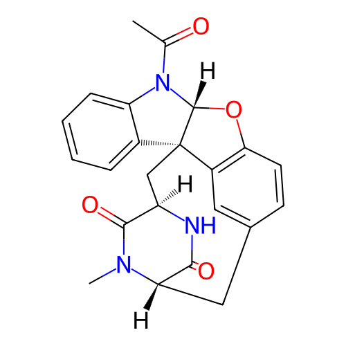 | SMILES | CC(=O)N1C2=CC=CC=C2[C@@]23C[C@H]4NC(=O)[C@H](CC5=CC2=C(C=C5)O[C@@H]13)N(C)C4=O |