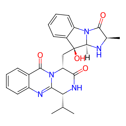 | SMILES | C[C@@H]1C(=O)N2[C@@H](N1)[C@@](C3=CC=CC=C32)(C[C@@H]4C(=O)N[C@@H](C5=NC6=CC=CC=C6C(=O)N45)C(C)C)O |