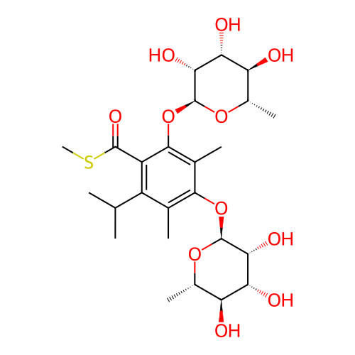 | SMILES | C[C@H]1[C@@H]([C@H]([C@H]([C@@H](O1)OC2=C(C(=C(C(=C2C)O[C@H]3[C@@H]([C@@H]([C@H]([C@@H](O3)C)O)O)O)C(=O)SC)C(C)C)C)O)O)O |