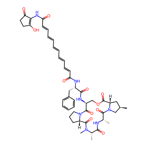 | SMILES | C[C@@H]1C[C@H]2C(=O)OC[C@@H](C(=O)N3CCC[C@H]3C(=O)N([C@H](C(=O)N[C@H](C(=O)N2C1)C)C)C)NC(=O)[C@H](CC4=CC=CC=C4)NC(=O)/C=C/C=C/C=C/C=C/C=C/C(=O)NC5=C(CCC5=O)O |