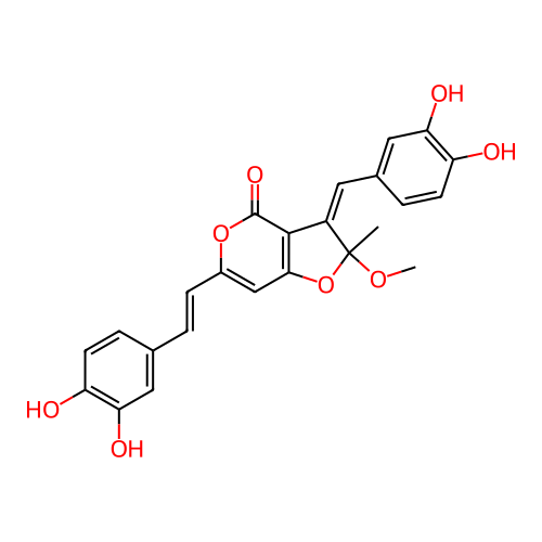 | InChI | InChI=1S/C24H20O8/c1-24(30-2)16(9-14-5-8-18(26)20(28)11-14)22-21(32-24)12-15(31-23(22)29)6-3-13-4-7-17(25)19(27)10-13/h3-12,25-28H,1-2H3/b6-3+,16-9- |