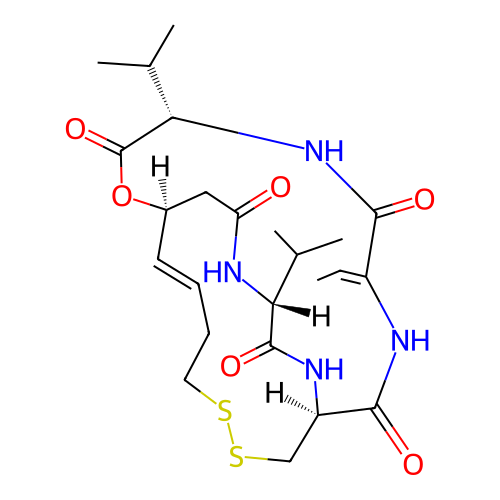 | SMILES | C/C=C\1/C(=O)N[C@H](C(=O)O[C@H]\2CC(=O)N[C@@H](C(=O)N[C@H](CSSCC/C=C2)C(=O)N1)C(C)C)C(C)C |