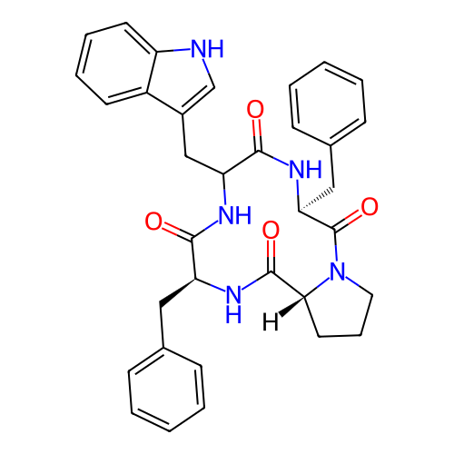 | SMILES | C1C[C@@H]2C(=O)N[C@H](C(=O)NC(C(=O)N[C@H](C(=O)N2C1)CC3=CC=CC=C3)CC4=CNC5=CC=CC=C54)CC6=CC=CC=C6 |