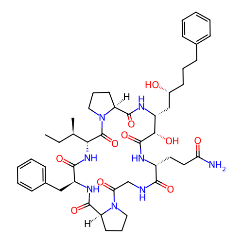 | SMILES | CC[C@@H](C)[C@@H]1C(=O)N2CCC[C@H]2C(=O)N[C@@H]([C@@H](C(=O)N[C@@H](C(=O)NCC(=O)N3CCC[C@H]3C(=O)N[C@H](C(=O)N1)CC4=CC=CC=C4)CCC(=O)N)O)C[C@@H](CCCC5=CC=CC=C5)O |