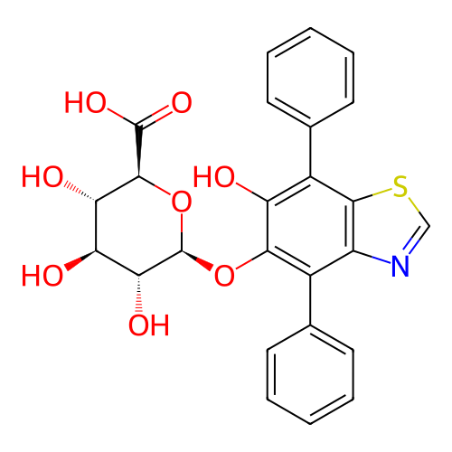 | SMILES | C1=CC=C(C=C1)C2=C3C(=C(C(=C2O[C@H]4[C@@H]([C@H]([C@@H]([C@H](O4)C(=O)O)O)O)O)O)C5=CC=CC=C5)SC=N3 |