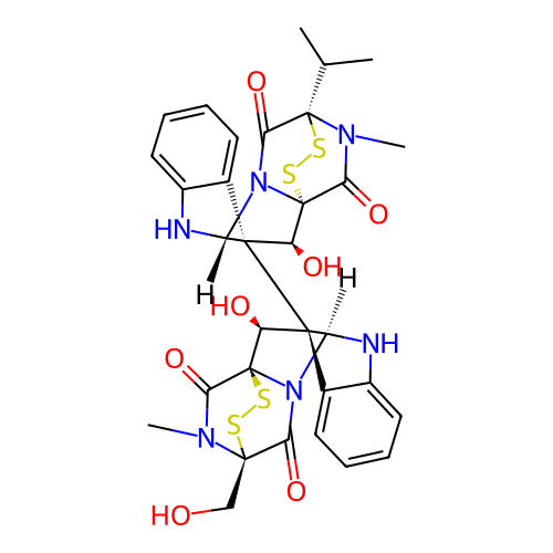 | SMILES | CC(C)[C@]12C(=O)N3[C@@H]4[C@]([C@@H]([C@@]3(C(=O)N1C)SS2)O)(C5=CC=CC=C5N4)[C@@]67[C@@H]([C@@]89C(=O)N([C@@](C(=O)N8[C@@H]6NC1=CC=CC=C71)(SS9)CO)C)O |
