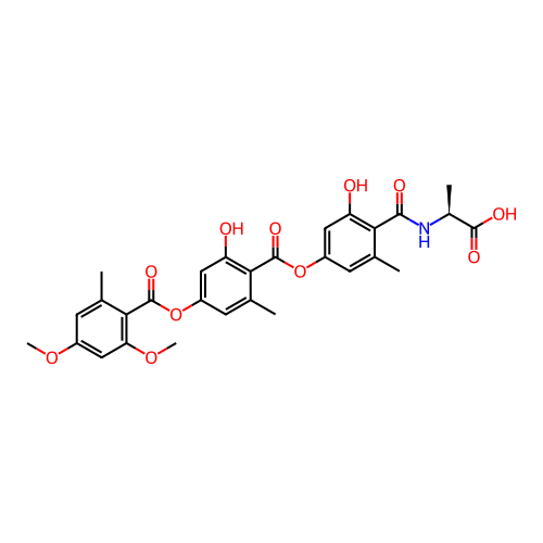 | SMILES | CC1=CC(=CC(=C1C(=O)N[C@@H](C)C(=O)O)O)OC(=O)C2=C(C=C(C=C2C)OC(=O)C3=C(C=C(C=C3C)OC)OC)O |