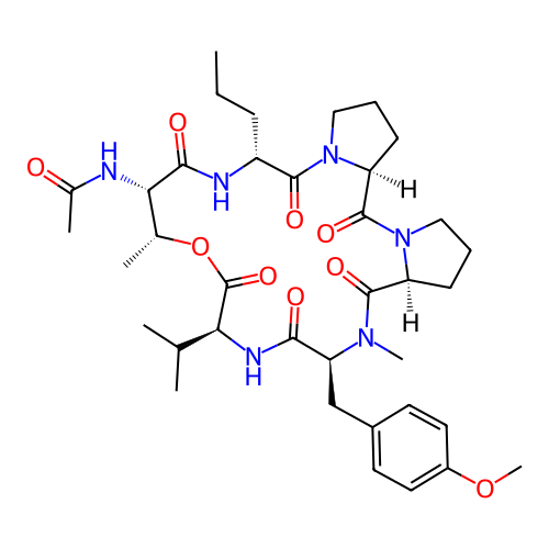 | SMILES | CCC[C@@H]1C(=O)N2CCC[C@H]2C(=O)N3CCC[C@H]3C(=O)N([C@H](C(=O)N[C@H](C(=O)O[C@@H]([C@@H](C(=O)N1)NC(=O)C)C)C(C)C)CC4=CC=C(C=C4)OC)C |