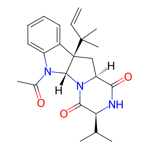 | SMILES | CC(C)[C@H]1C(=O)N2[C@@H](C[C@@]3([C@H]2N(C4=CC=CC=C43)C(=O)C)C(C)(C)C=C)C(=O)N1 |