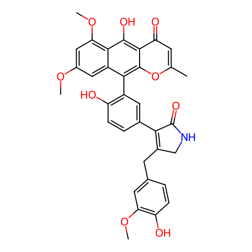 | SMILES | CC1=CC(=O)C2=C(C3=C(C=C(C=C3C(=C2O1)C4=C(C=CC(=C4)C5=C(CNC5=O)CC6=CC(=C(C=C6)O)OC)O)OC)OC)O |