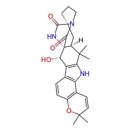 | SMILES | CC1(C=CC2=C(O1)C=CC3=C2NC4=C3[C@@H]([C@]56[C@H](C4(C)C)C[C@@]7(CCCN7C5=O)C(=O)N6)O)C |