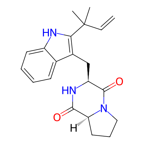 | SMILES | CC(C)(C=C)C1=C(C2=CC=CC=C2N1)C[C@H]3C(=O)N4CCC[C@H]4C(=O)N3 |