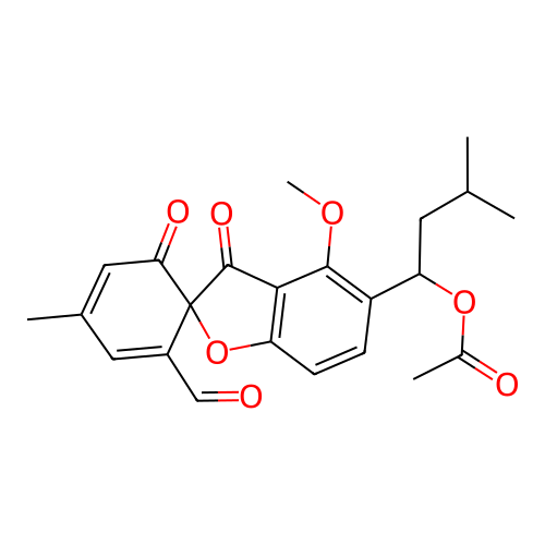 | SMILES | CC1=CC(=O)C2(C(=C1)C=O)C(=O)C3=C(O2)C=CC(=C3OC)C(CC(C)C)OC(=O)C |