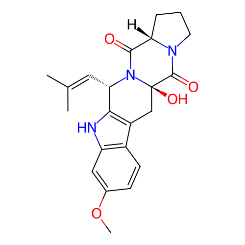 | InChI | InChI=1S/C22H25N3O4/c1-12(2)9-18-19-15(14-7-6-13(29-3)10-16(14)23-19)11-22(28)21(27)24-8-4-5-17(24)20(26)25(18)22/h6-7,9-10,17-18,23,28H,4-5,8,11H2,1-3H3/t17-,18-,22+/m0/s1 |