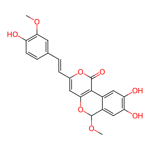 | InChI | InChI=1S/C22H18O8/c1-27-18-7-11(4-6-15(18)23)3-5-12-8-19-20(21(26)29-12)13-9-16(24)17(25)10-14(13)22(28-2)30-19/h3-10,22-25H,1-2H3/b5-3+ |