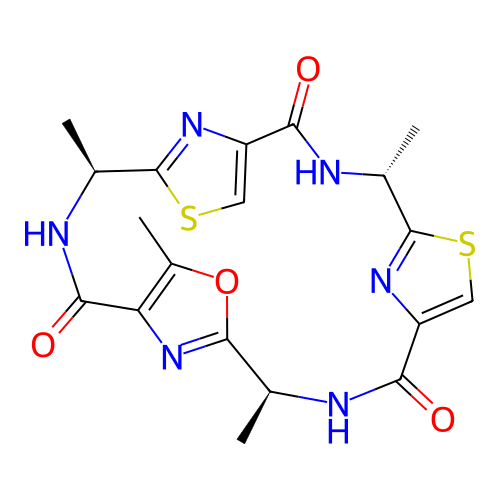 | SMILES | C[C@H]1C2=NC(=C(O2)C)C(=O)N[C@H](C3=NC(=CS3)C(=O)N[C@@H](C4=NC(=CS4)C(=O)N1)C)C |