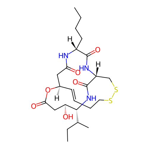| SMILES | CCCC[C@@H]1C(=O)N[C@@H]2CSSCCC=C[C@H](CC(=O)N1)OC(=O)C[C@@H]([C@H](NC2=O)C(C)CC)O |
