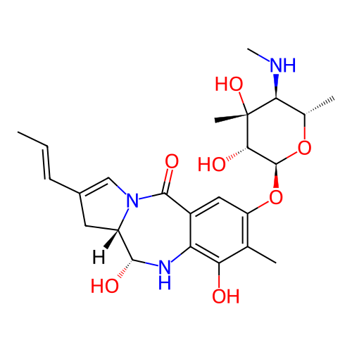 | InChI | InChI=1S/C24H33N3O7/c1-6-7-13-8-15-21(30)26-17-14(22(31)27(15)10-13)9-16(11(2)18(17)28)34-23-20(29)24(4,32)19(25-5)12(3)33-23/h6-7,9-10,12,15,19-21,23,25-26,28-30,32H,8H2,1-5H3/b7-6+/t12-,15-,19-,20-,21+,23-,24+/m0/s1 |