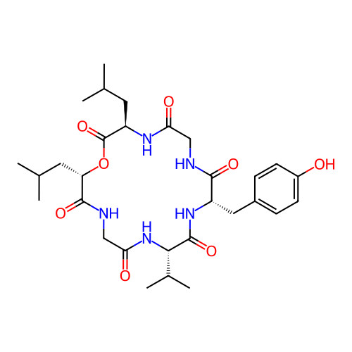 | SMILES | CC(C)C[C@@H]1OC(=O)[C@@H](CC(C)C)NC(=O)CNC(=O)[C@H](CC2=CC=C(O)C=C2)NC(=O)[C@H](C(C)C)NC(=O)CNC1=O |