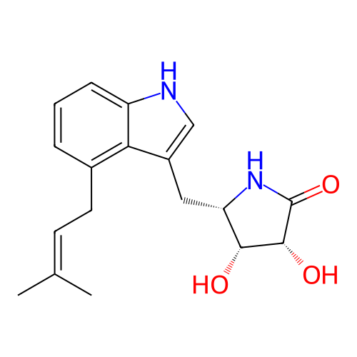 | SMILES | CC(=CCC1=C2C(=CC=C1)NC=C2C[C@H]3[C@H]([C@H](C(=O)N3)O)O)C |
