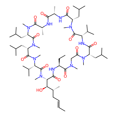| SMILES | CC[C@H]1C(=O)N(CC(=O)N([C@H](C(=O)N[C@H](C(=O)N([C@H](C(=O)N[C@H](C(=O)N[C@@H](C(=O)N([C@H](C(=O)N([C@H](C(=O)N([C@H](C(=O)N([C@H](C(=O)N1)[C@@H]([C@H](C)C/C=C/C)O)C)C(C)C)C)CC(C)C)C)CC(C)C)C)C)C)CC(C)C)C)C(C)C)CC(C)C)C)C |