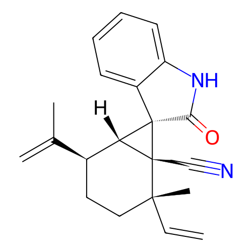 | SMILES | CC(=C)[C@@H]1CC[C@@]([C@@]2([C@H]1[C@@]23C4=CC=CC=C4NC3=O)C#N)(C)C=C |