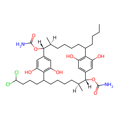 | SMILES | CCCCC1CCCC[C@@H]([C@H](C2=CC(=C(C(CCCC[C@@H]([C@H](C3=CC(=C1C(=C3)O)O)OC(=O)N)C)CCCC(Cl)Cl)C(=C2)O)O)OC(=O)N)C |