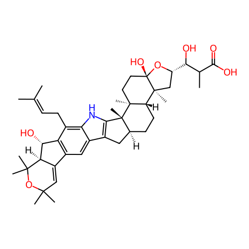 | SMILES | CC(C([C@@H]1C[C@]2([C@@H]3CC[C@H]4CC5=C([C@@]4([C@]3(CC[C@@]2(O1)O)C)C)NC6=C(C7=C(C=C56)C8=CC(OC([C@H]8[C@@H]7O)(C)C)(C)C)CC=C(C)C)C)O)C(=O)O |