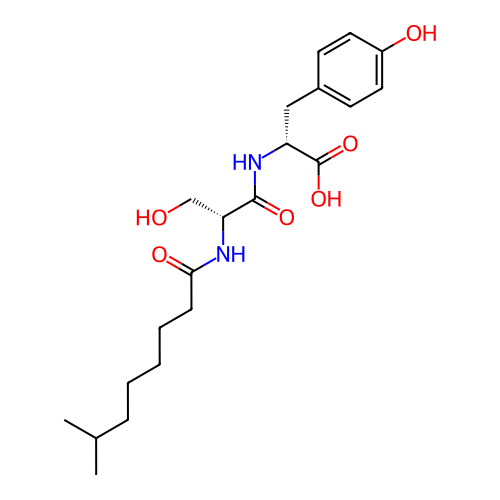 | SMILES | CC(C)CCCCCC(=O)N[C@H](CO)C(=O)N[C@H](CC1=CC=C(C=C1)O)C(=O)O |