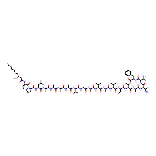 | SMILES | CCCCCCCC(O)CC(=O)N\C(=C\C)C(=O)N1CCCC1C(=O)NC(CC(C)C)C(=O)NC(C)C(=O)NC(C)C(=O)NC(C)C(=O)NC(C)C(=O)NC(C(C)C)C(=O)NCC(=O)NC(C)C(=O)NC(C(C)C)C(=O)NC(C)C(=O)NC(C(C)C)C(=O)N\C(=C/C)C(=O)NC1C(C)OC(=O)C(CC2=CC=CC=C2)NC(=O)C(NC(=O)C(NC(=O)C(C)NC1=O)C(C)N)C(C)N |