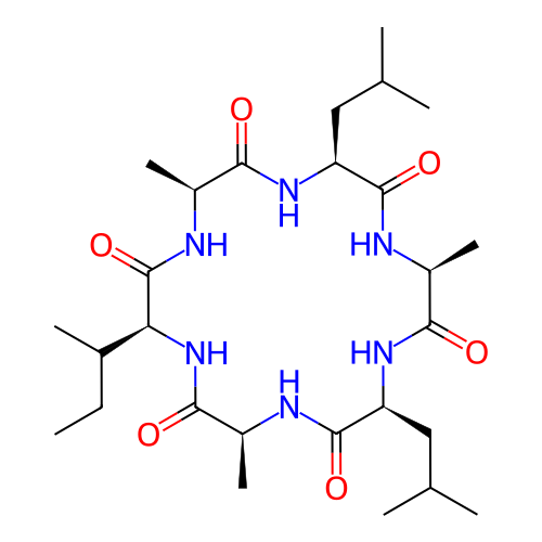| SMILES | CCC(C)[C@H]1C(=O)N[C@H](C(=O)N[C@H](C(=O)N[C@H](C(=O)N[C@H](C(=O)N[C@H](C(=O)N1)C)CC(C)C)C)CC(C)C)C |
