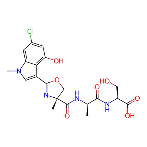 | SMILES | C[C@H](C(=O)N[C@@H](CO)C(=O)O)NC(=O)[C@]1(COC(=N1)C2=CN(C3=CC(=CC(=C32)O)Cl)C)C |