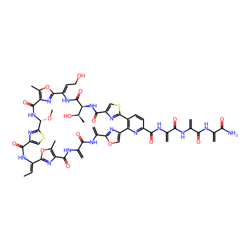 | SMILES | C/C=C\1/C2=NC(=C(O2)C)C(=O)NC(=C)C(=O)NC(=C)C3=NC(=CO3)C4=C(C=CC(=N4)C(=O)NC(=C)C(=O)NC(=C)C(=O)NC(=C)C(=O)N)C5=NC(=CS5)C(=O)N[C@H](C(=O)N/C(=C\CO)/C6=NC(=C(O6)C)C(=O)N[C@@H](C7=NC(=CS7)C(=O)N1)OC)[C@@H](C)O |