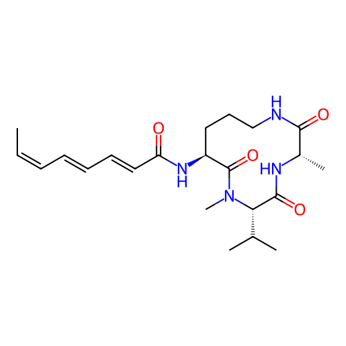 | SMILES | C/C=C\C=C\C=C\C(=O)N[C@H]1CCCNC(=O)[C@@H](NC(=O)[C@@H](N(C1=O)C)C(C)C)C |