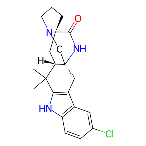 | SMILES | CC1([C@@H]2C[C@]34CCCN3C[C@@]2(CC5=C1NC6=C5C=C(C=C6)Cl)NC4=O)C |