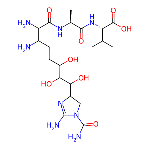 | SMILES | C[C@@H](C(=O)N[C@@H](C(C)C)C(=O)O)NC(=O)C(C(CCC(C(C(C1CN(C(=N1)N)C(=O)N)O)O)O)N)N |
