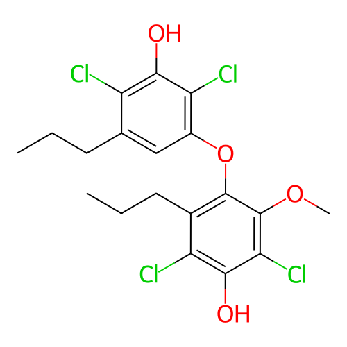 | SMILES | CCCC1=CC(=C(C(=C1Cl)O)Cl)OC2=C(C(=C(C(=C2OC)Cl)O)Cl)CCC |