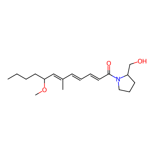 | SMILES | CCCCC(/C=C(\C)/C=C/C=C/C(=O)N1CCCC1CO)OC |