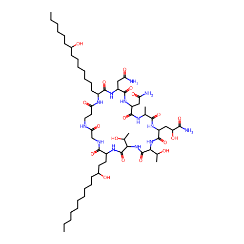 | SMILES | CCCCCCCCCCC(CCC1C(=O)NCC(=O)NCCC(=O)NC(C(=O)NC(C(=O)NC(C(=O)NC(C(=O)NC(C(=O)NC(C(=O)NC(C(=O)N1)C(C)O)C(C)O)CC(C(=O)N)O)C)CC(=O)N)CC(=O)N)CCCCCCCC(CCCCCC)O)O |