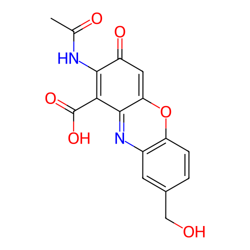 | SMILES | CC(=O)NC1=C(C2=NC3=C(C=CC(=C3)CO)OC2=CC1=O)C(=O)O |